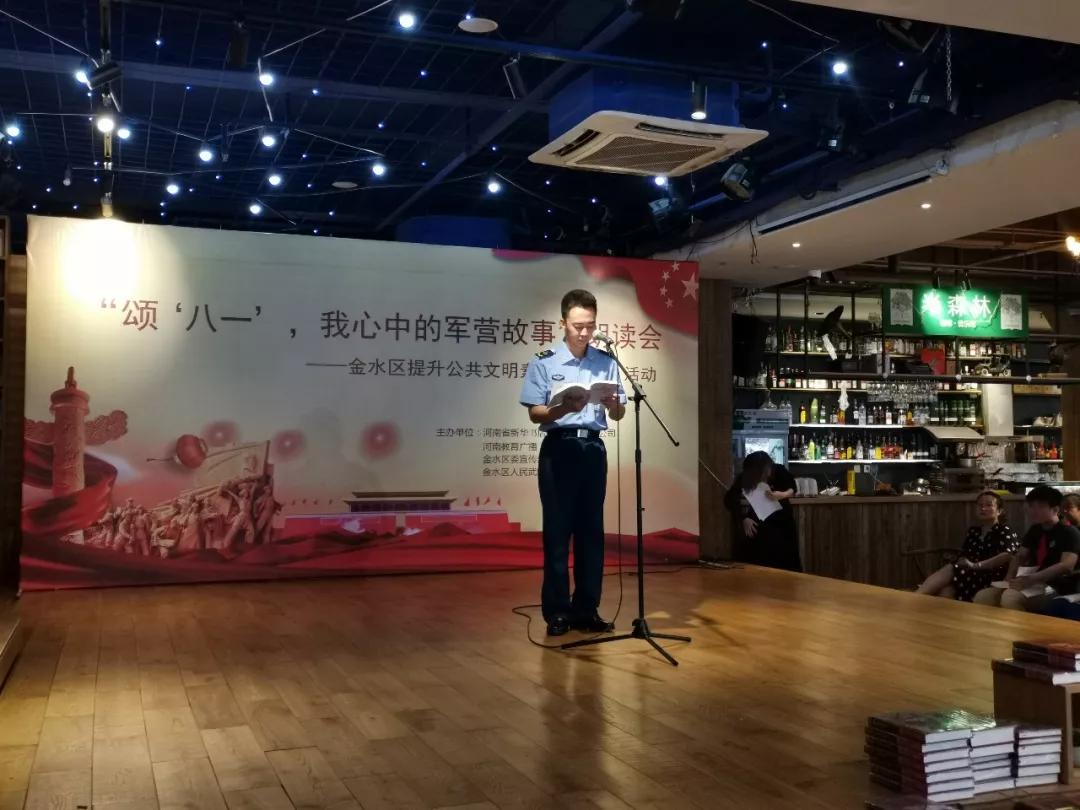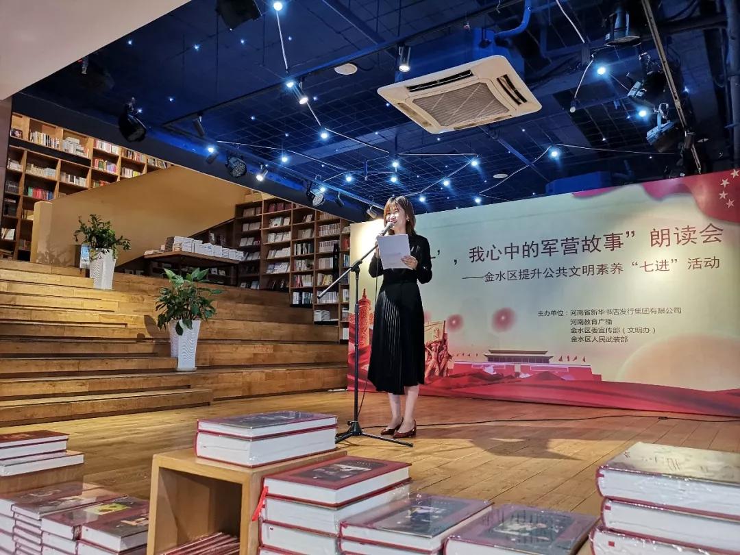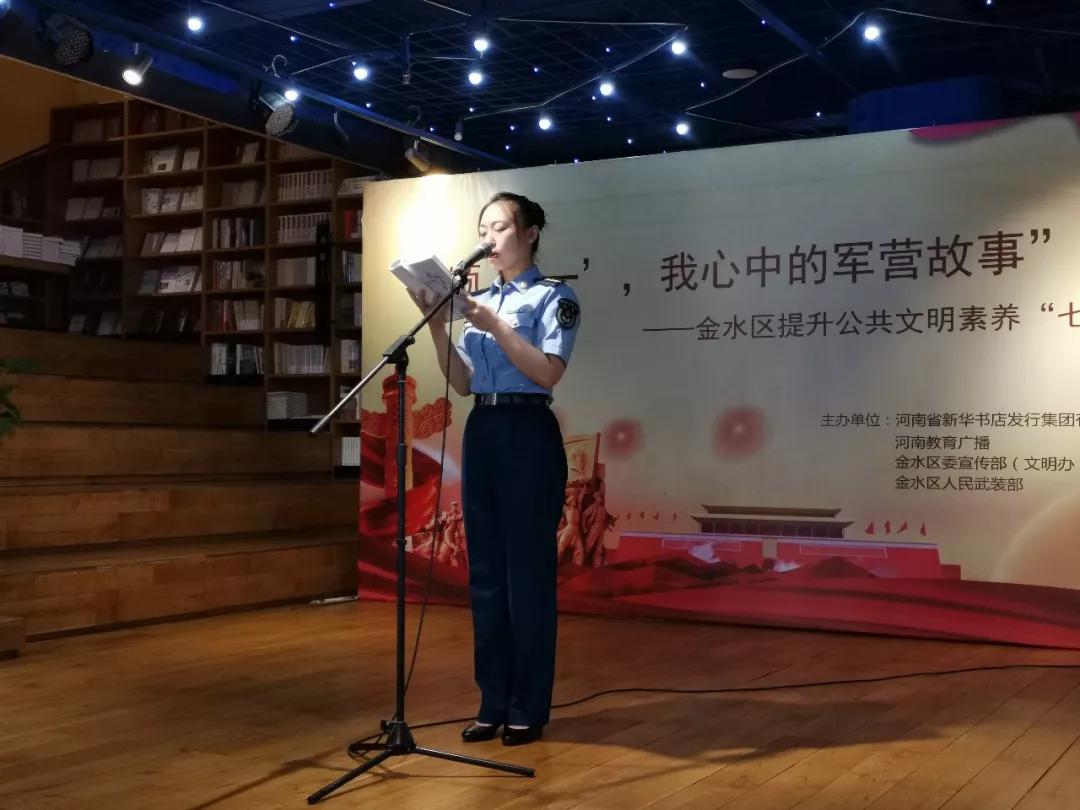 8月1日上午,爲慶祝中國(guó)人民解放軍成(chéng)立92周年,更好(hǎo)展現當代人民子弟兵卓越風采,講述軍民相擁的動人故事(shì),推進(jìn)提升公共文明素養“七進(jìn)”工作,河南省新野縣新華書店有限公司、河南教育廣播、金水區委宣傳部(文明辦)、金水區人民武裝部共同舉辦“頌‘八一’,我心中的軍營故事(shì)”朗讀會(huì),暨金水區提升公共文明素養“七進(jìn)”系列活動在中原圖書大廈回聲館舞台舉行。