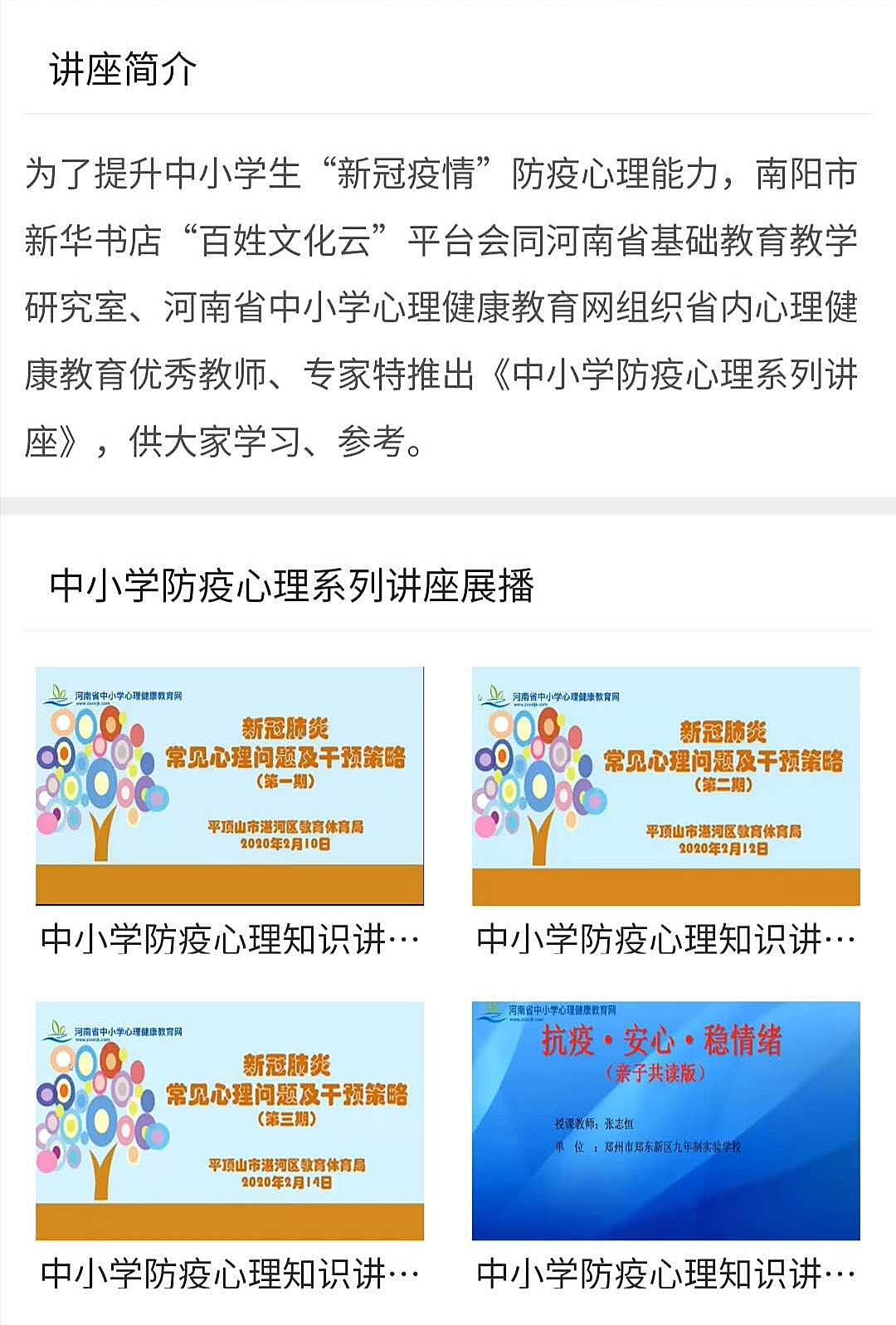 《中小學(xué)防疫心理知識講座》上線百姓文化南陽雲