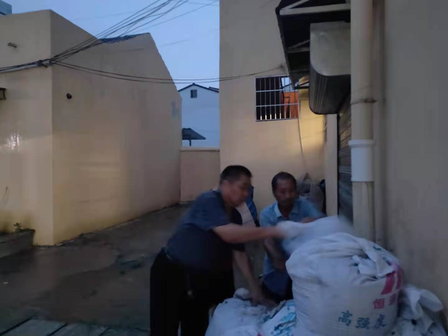 扶溝縣新華書店職工用沙袋堵住雨水進(jìn)入倉庫