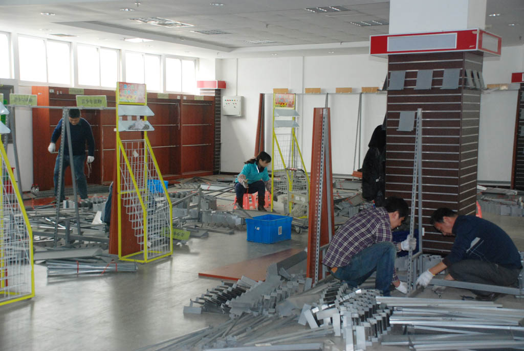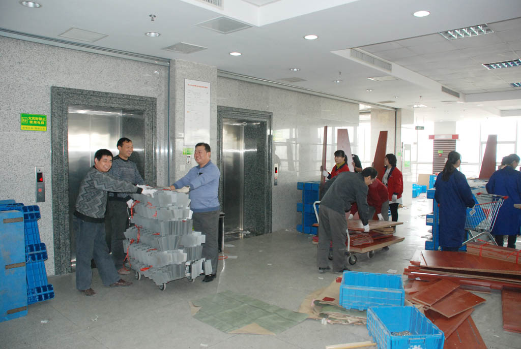 此次清理的貨架全部集中在樣(yàng)本大廳三樓,共計750組,需要在一天時(shí)間内把貨架完整的拆卸下來并妥善保管。由于貨架十分沉重,部分鐵質貨架在拆卸過(guò)程中還(hái)有一定的危險性,工作強度非常大。但是,廣大青年職工們齊心協力,充分發(fā)揮新華人吃苦耐勞、任勞任怨的優良傳統,全力以赴做好(hǎo)貨架清理工作。