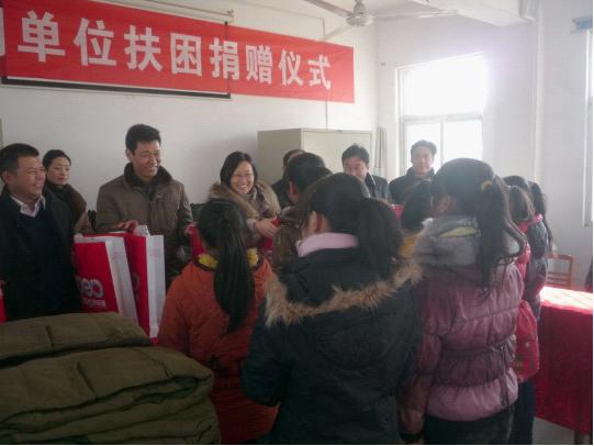 2012年12月31日,在新年即將(jiāng)之際,中共泌陽縣委組織部部長(cháng)和宣傳部副部長(cháng)帶領由泌陽縣國(guó)稅局、泌陽縣店、移動公司三家組成(chéng)的文明單位扶困捐贈小組,前往泌陽縣高邑鄉,對(duì)留守兒童進(jìn)行了扶困捐贈活動。嚴寒冬天,溫情融融,扶困小組把幾十套棉衣、棉被(bèi)和127冊《新華字典》親自送到留守兒童的手中,讓留守貧困兒童深深感受到春天般的溫暖。