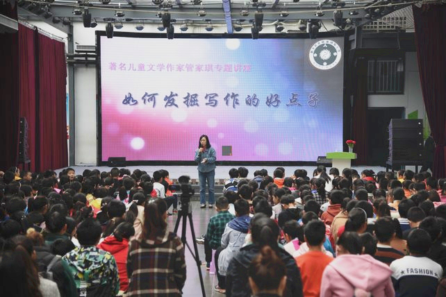 在“名家進(jìn)校園”活動中,管家琪老師每到一所學(xué)校,都(dōu)以自己如何與寫作結緣爲引,談到自己獲得寫作題材的方法,鼓勵學(xué)生們在日常中多記錄,做好(hǎo)筆記,尋找發(fā)現的眼睛,結合寫作經(jīng)曆和生活小故事(shì),以通俗易懂、風趣幽默的語言和豐富的人生經(jīng)曆,和學(xué)生共同分享閱讀和寫作中的感悟,教學(xué)生發(fā)揮想象,感受寫作帶來的樂趣。精彩互動環節中,管家琪老師以遊戲的方式和孩子們玩起(qǐ)來寫作遊戲。針對(duì)大家寫作方面(miàn)的迷茫與困惑、管家琪老師與現場孩子們進(jìn)行真摯而親切的交流,解答孩子們的困惑。活動現場氣氛活躍,活動的最後(hòu)管家琪老師還(hái)建議孩子們,在日常生活中,多閱讀名著以及積極向(xiàng)上的作品,它可以開(kāi)闊視野,拓展思維。現場觀衆或積極提問、踴躍發(fā)言,或認真聆聽、認真記錄,現場洋溢著(zhe)開(kāi)心閱讀氣氛。在每次講座結束後(hòu),管家琪老師還(hái)饒有興趣地爲喜歡自己作品的小讀者簽名留念。